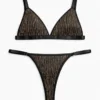 Conjunto de soutien con arco y microbikini con laterales regulables. Ambos confeccionados en puntilla y plumetí.