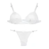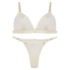 Conjunto de soutien triángulo y microbikini en delicado plumeti, inspirado en el encanto vintage que nunca pasa de moda. Liviano, femenino y con ese aire romántico que realza tu esencia natural.